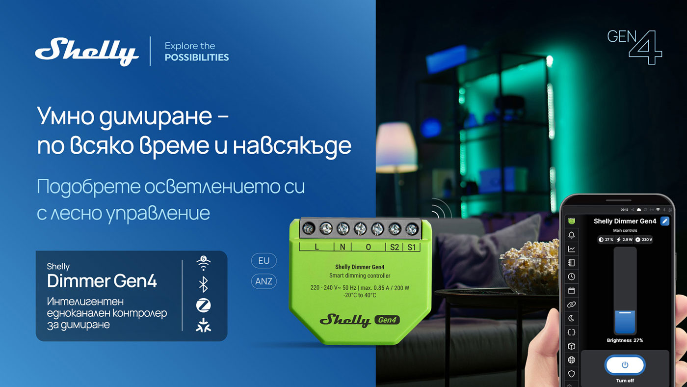 Shelly Dimmer Gen4: По-умно, плавно и универсално управление на осветление