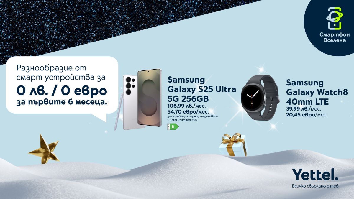 Коледна оферта от Yettel: 6 месеца 0 лв. лизингова вноска за премиум смарт устройства