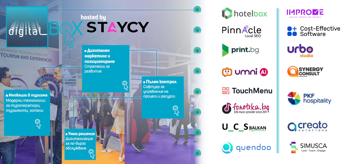 Digital Box ще обедини водещи технологични компании и дигитални маркетингови агенции, които ще споделят последните си разработки във всички сегменти на туризма. Сред тях – АI инструменти за ремаркетинг, управление на резервации и комуникация с клиентите, иновативни дигитални платформи за b2b и b2c онлайн продажби, централизирани решения за дистанционно управление в реално време. Хост на второто издание на Digital Box е Staycy. Най-новият продукт на Flataway е първият AI агент, обучен с реална експертиза от хоспиталити сферата. Само за няколко минути създава модерен уебсайт за директни резервации, оптимизиран и за традиционно и за AI-базирано търсене.