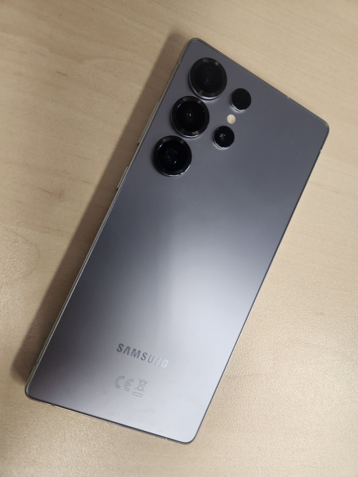 Samsung Galaxy S25 Ultra запазва премиум визията на серията, но този път дизайнът изглежда още по-изчистен и завършен. Устройството е с размери 162.8 x 77.6 x 8.2 мм. и стои стабилно в ръката, въпреки по-големия си корпус. Теглото от 218 гр. допринася за усещането за здравина, без да го прави неудобно за носене.