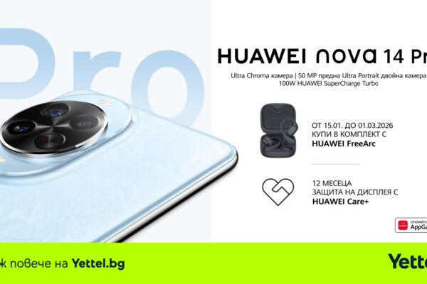 Yettel разширява продуктовото си портфолио с два нови продукта на HUAWEI – дизайнерски смартфон от ново поколение и премиум безжични слушалки с отличителен дизайн. Новите устройства са създадени за хората, които обичат да започват годината с модерни технологии, съчетаващи иновации, стил и интелигентни функции, адаптирани към динамичното ежедневие и съвременния дигитален начин на живот. До 1 март 2026…
