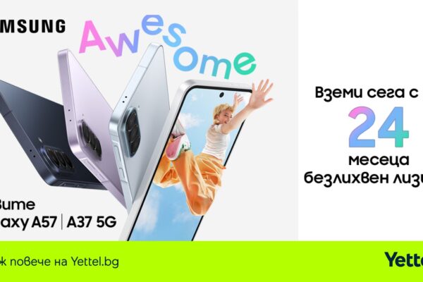 Galaxy A57 5G и Galaxy A37 5G са налични в Yettel с безлихвен лизинг за 24 месеца до 30 април Новата А серия на Samsung вече се предлага в мрежата на Yettel. Моделите Galaxy A57 5G и Galaxy A37 5G могат да бъдат закупени в магазините на телекома, в електронния магазин и директно през приложението…